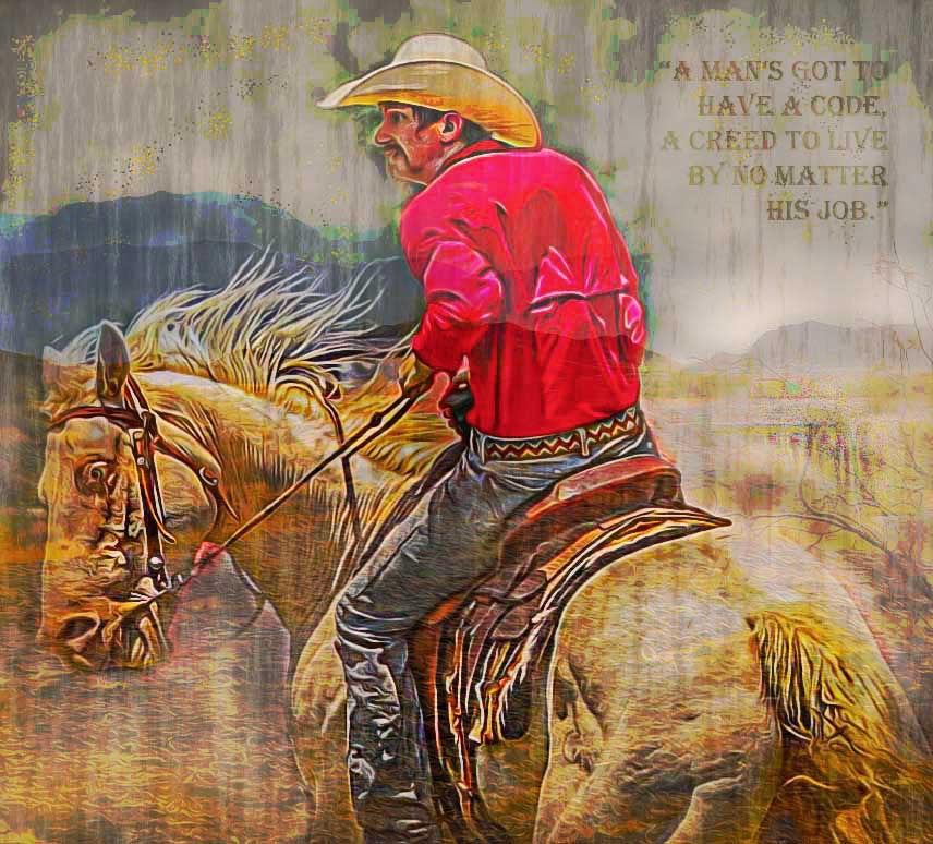 The "Cowboy Creed" embodies the core values and principles of the American cowboy lifestyle, often seen as a code of coduct and ethics.. It emphasizes honesty, courage, self-reliance, and a strong work ethic. Cowboys are expected to be truthful and stand up for what is right, even when it's difficult. Building strong relationships based on trust and loyalty is essential, both within the cowboys community and with the land.