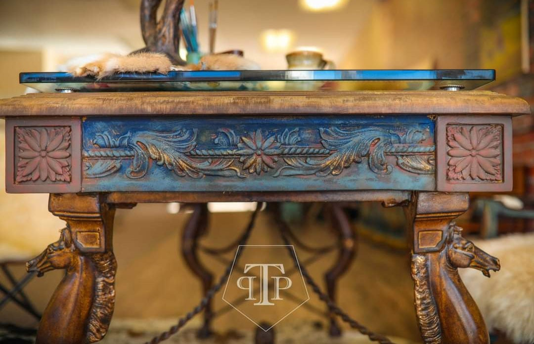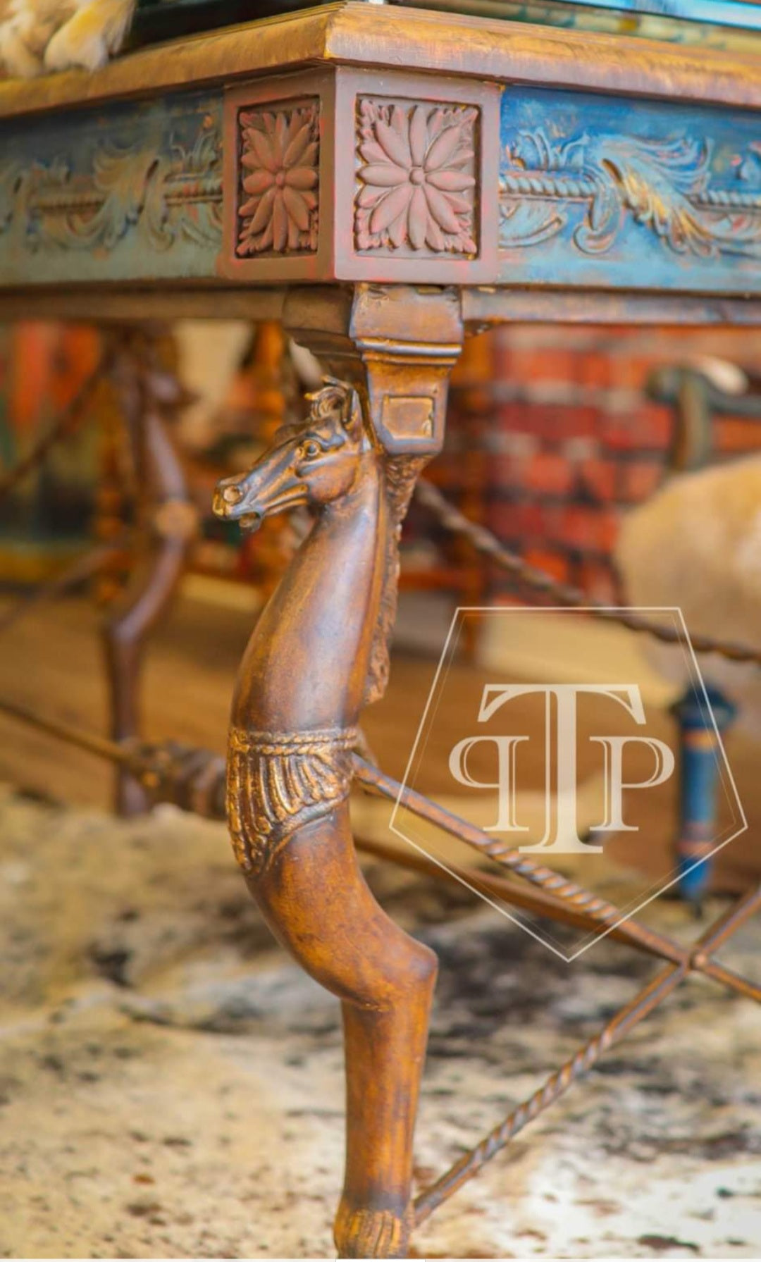 PICASSO - one-of-a-kind iron handpaiinted desk was passionately created to reflect the heart and soul of the most well know wild stallion in America Picasso. This set will bring passion and drive to be the boss and concour your challenges.