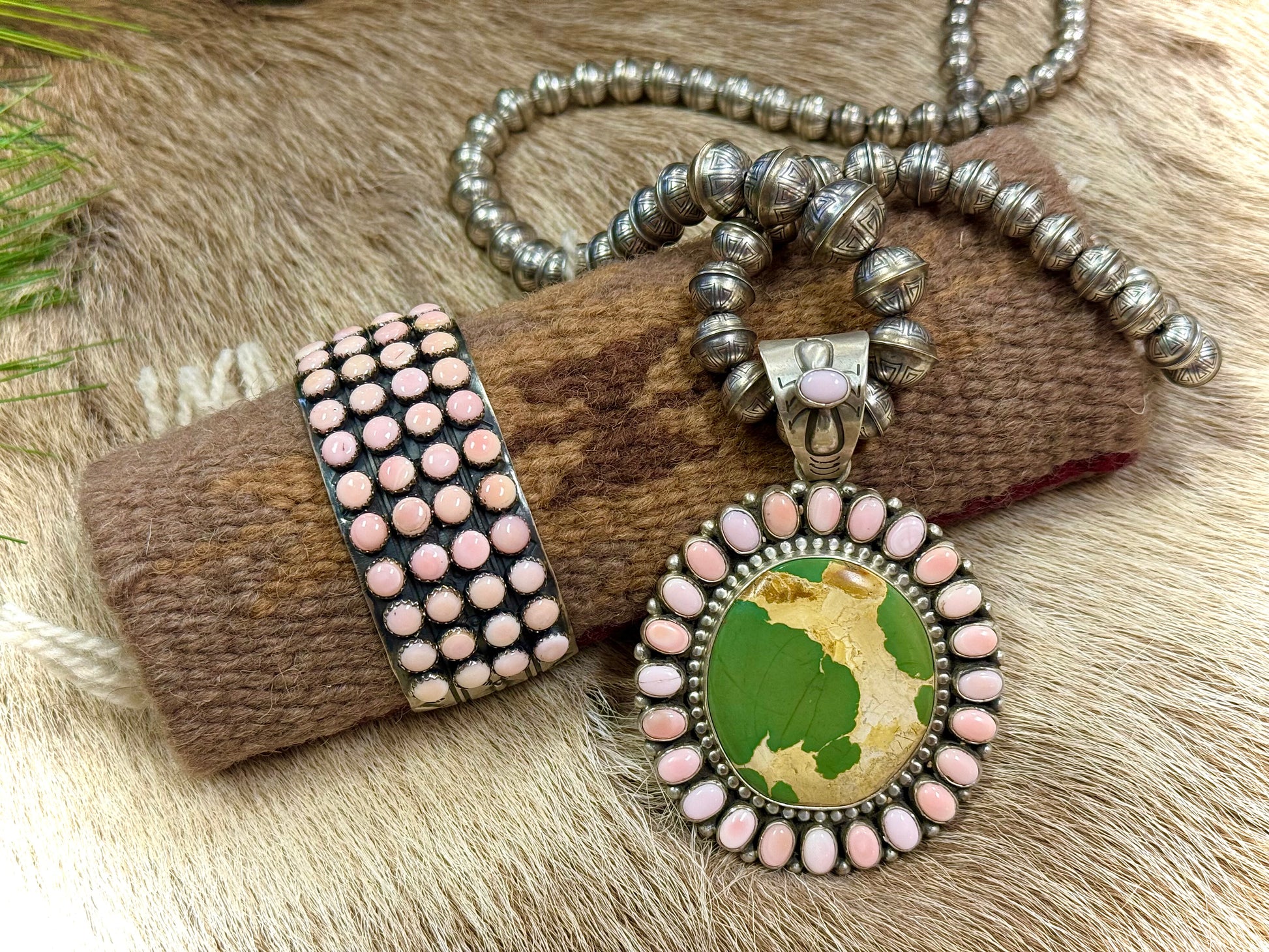 Rare Green Royston Turquoise & Pink Conch Pendant