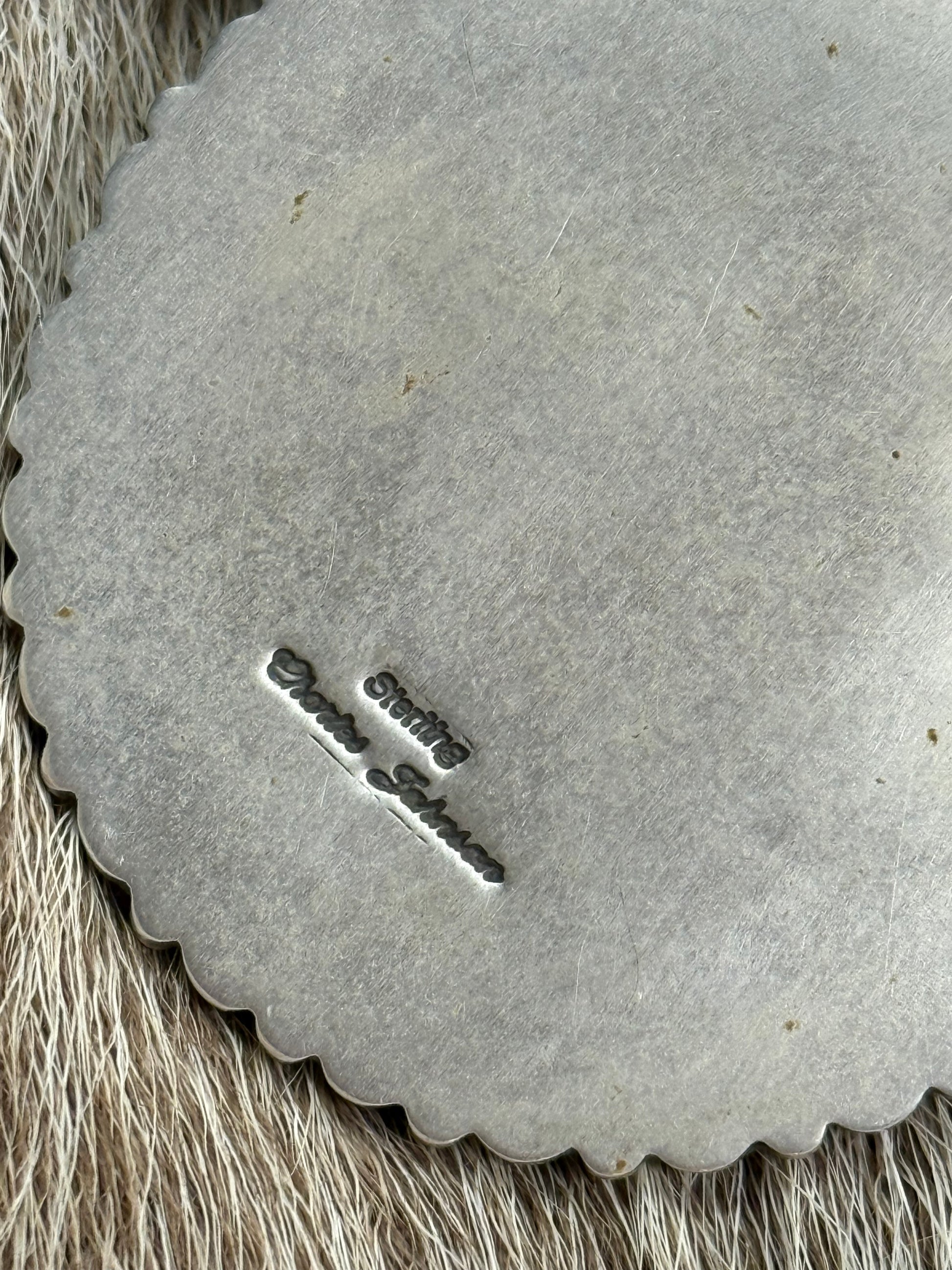 Large rare Royston Turquoise & Pink Conch pendant, set in sterling sliver .925 signed by artist. Can be worn alone as a statement piece or beautifully layered with pearls.