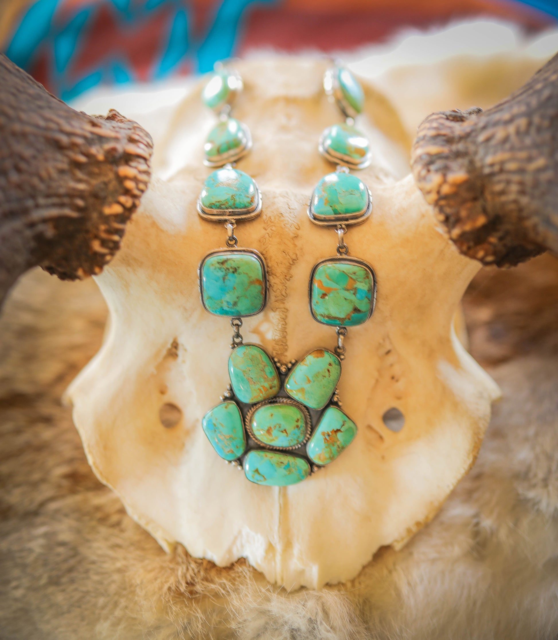 Squash Blossom Cluster Kingman Turquoise Necklace