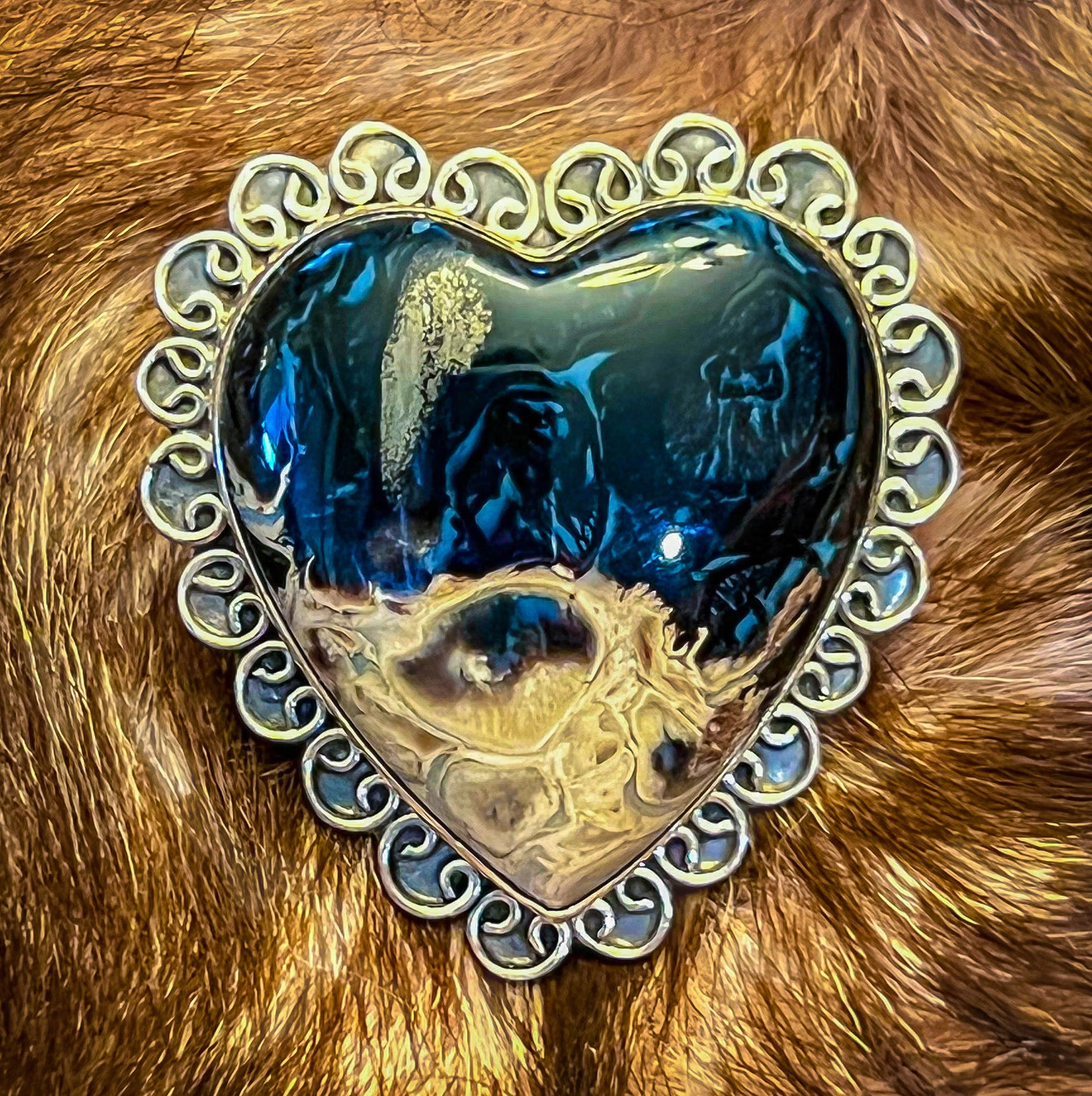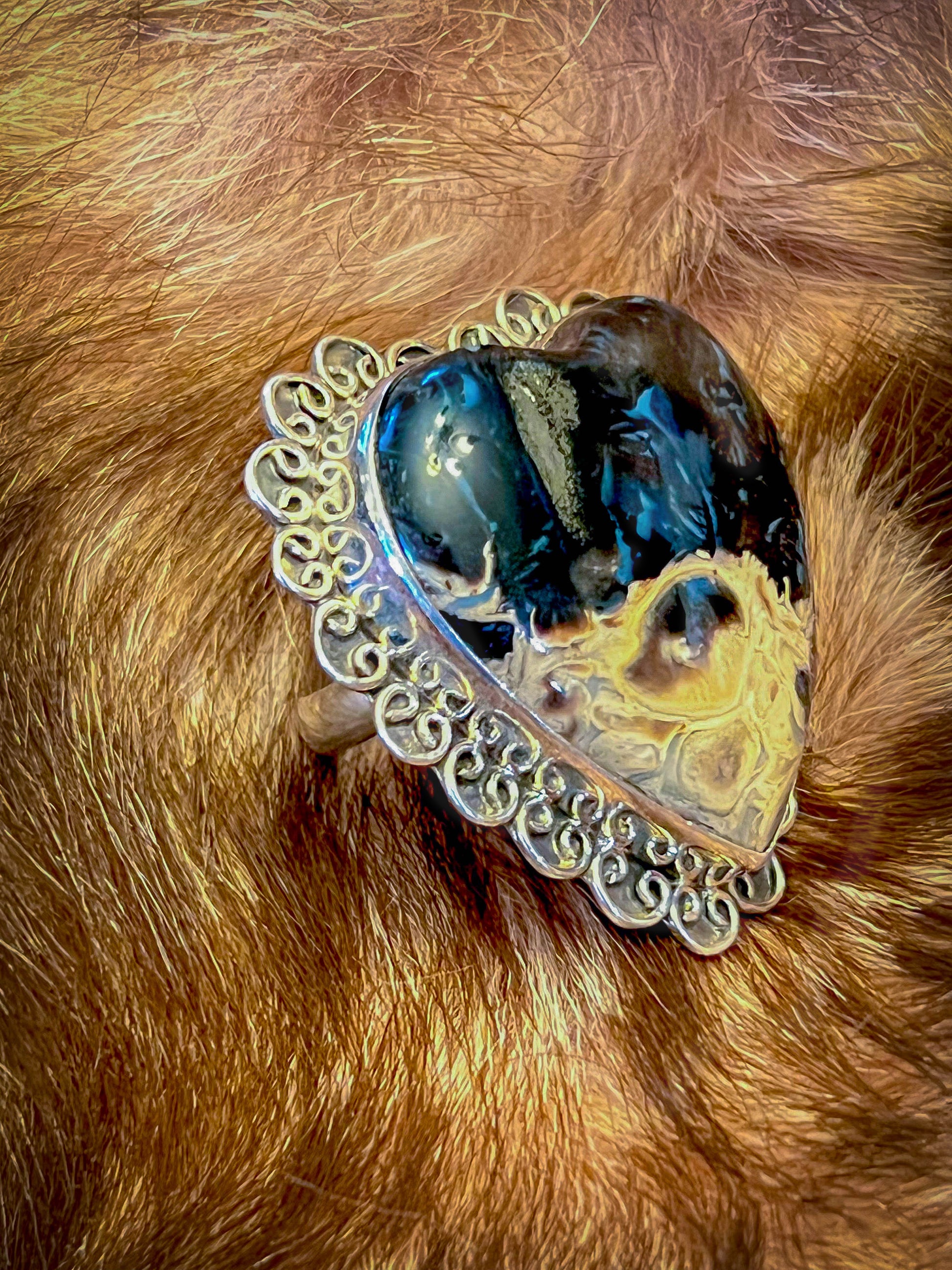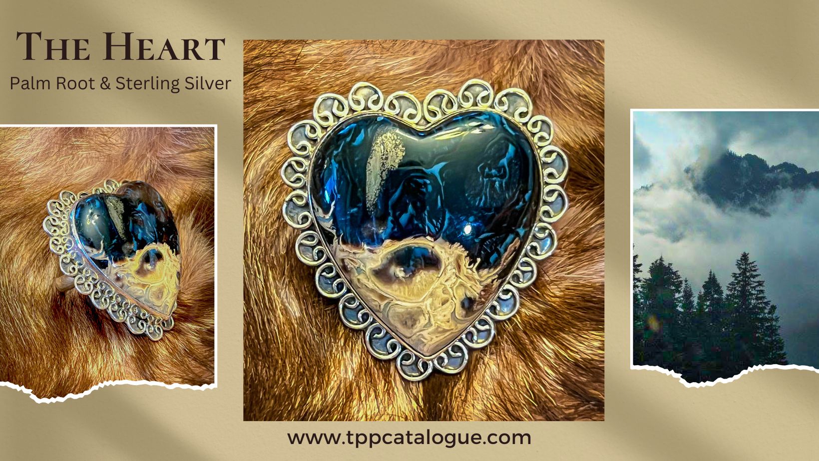 This super puff heart shaped piece is set in Sterling Silver and the rarest of Palm Root.